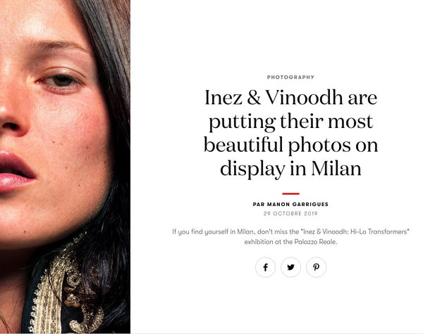 Inez & Vinoodh 31 Oct - 13 Nov 2019The Photo Vogue Festival, now in its fourth edition, has become a symbol of culture and excellence in the field of photography, dedicated to the common ground between Ethics and...Read more -