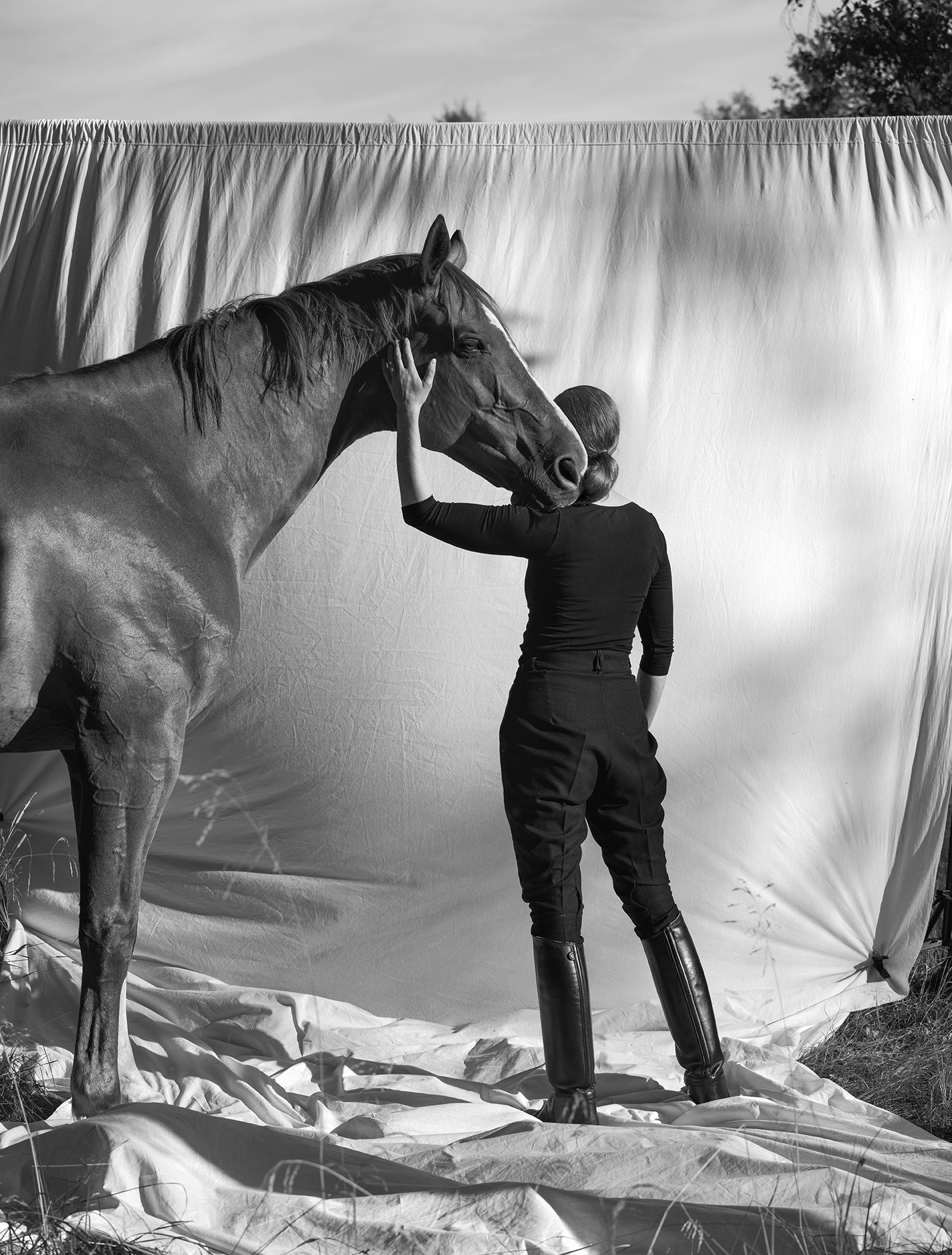 Anja Niemi: A riding accident as a child scared me away from riding most of my life, but when my daughter started riding a few years ago, I realised that I had been missing something. Every time I was in the stable with her I felt so much joy, and realised I wanted horses back in my life. I now own a beautiful Hanoverian with my sister and it has changed my life. My main task is to overcome my fear, become a confident rider and keep this lovely guy happy and healthy. As a photographer I naturally felt drawn to this new part of my life, so I started working on a new character, ‘THE RIDER.’ I feel like everything has been infused with horses and I wanted a place where it could all fit naturally together, so I started the Instagram account @thehorse.anjaniemi It’s a nice way to connect with like-minded horse girls and cheer each other on.