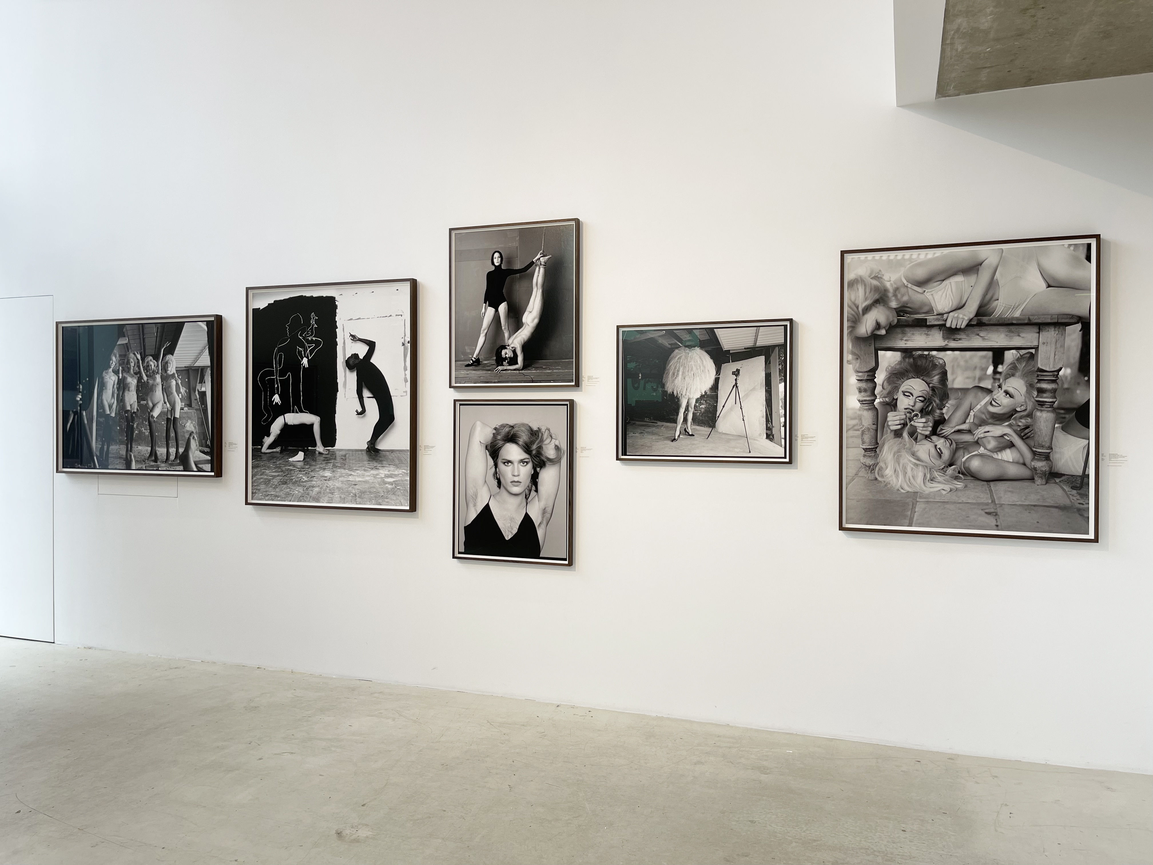 Some pictures are more puzzling than others. In Two in a Garage (2019), for example, one finds two figures in an apparently suburban garage, only both subjects are shirtless, in impressive heels, beautifully made-up and gleefully carrying a wooden plank above their head. Behind them there’s a medieval pillory, a wooden torture device with holes for the head and hands, where criminals were imprisoned and exposed to public abuse. In another titled Paul Monroe (2019), Bailey-Gates, who frequently appears in their own images, is seen sitting naked with their legs folded on the floor. Behind them a standing figure in a sharp suit wearing a riding hat clutches onto a handful of Bailey-Gates’s hair like one would the wild mane of an untamed horse.