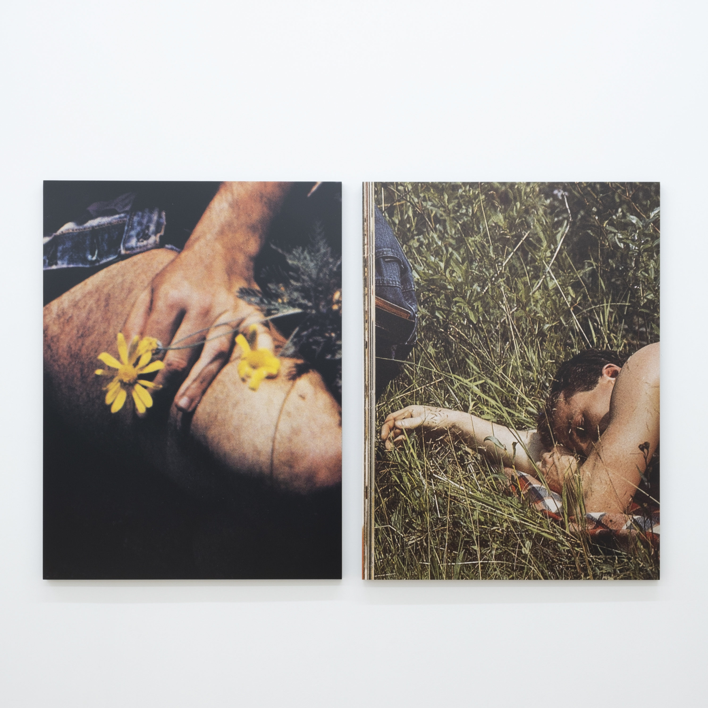 It’s not possible to fully grasp the physical and conceptual depth of Silano’s works until you see them in person. He creates his work by photographing, rather than scanning, archival images that he culls from 20th-century gay erotica. He then makes further edits to those images in Photoshop, such as increasing the scale of the image to show the pixelated grain. In a 2020 visiting artist talk at the Yale School of Art, Silano explained his approach: “I don’t take pictures in real life because I feel that everything that I have wanted to say has been said, and that I am just finding ways to translate them.”