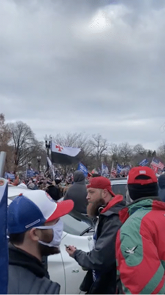 Niet alle vlaggen op 6 januari 2021 zijn Amerikaans. Ook andere landen blijken vertegenwoordigd.