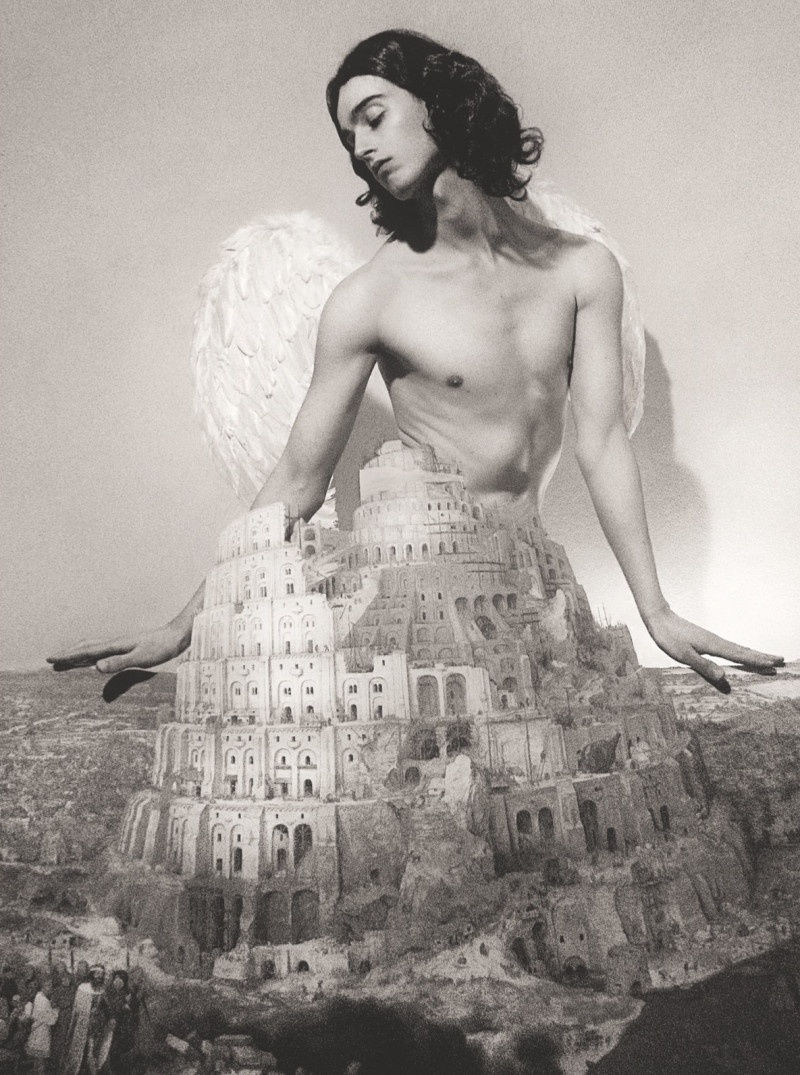 CS: Well, I thought of Bruegel’s Tower of Babel as the prototypical image of a city. So I had a large print made on card stock which I cut the sky out of and put against my full-length mirror and kneeled behind as an angel looking over the citizens of ill-fated Babel. I suppose the final effect is a kind of real-life collage. I like that image because it was quite straightforward to do and it came out exactly as I imagined it would.